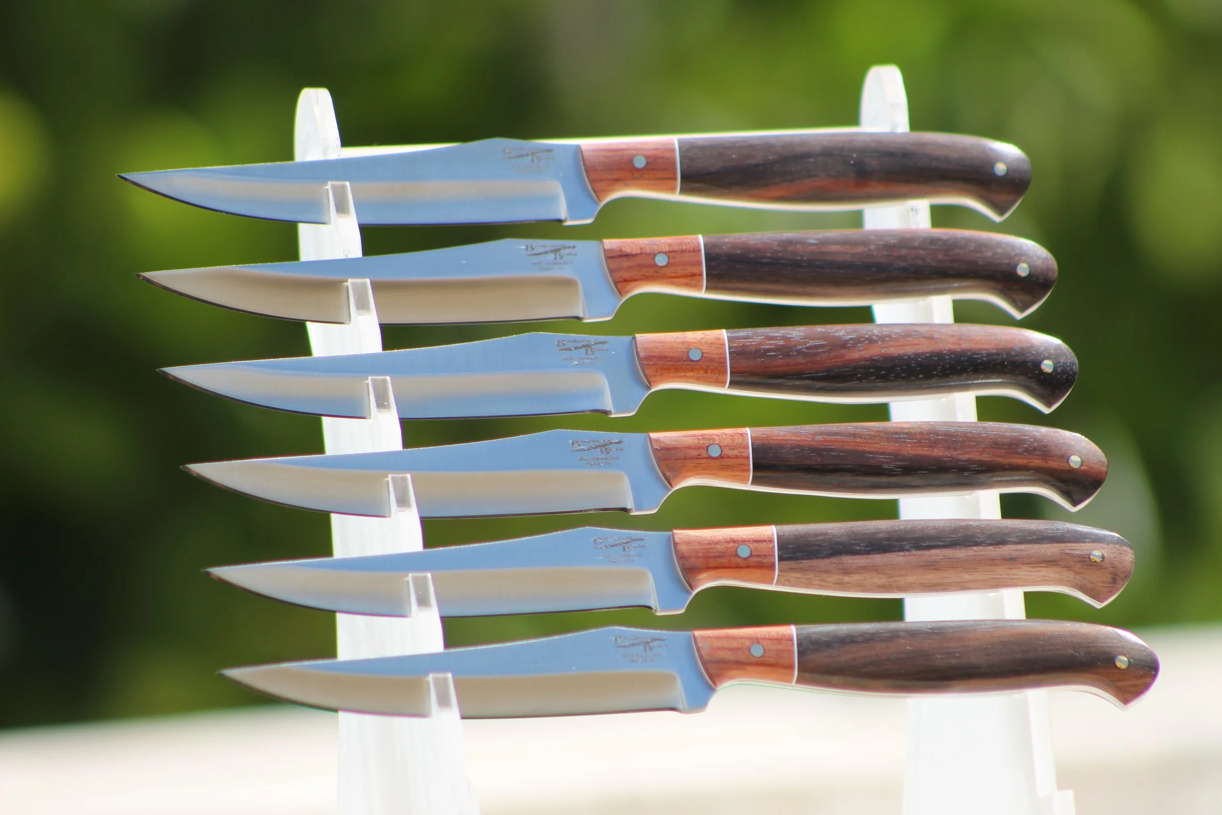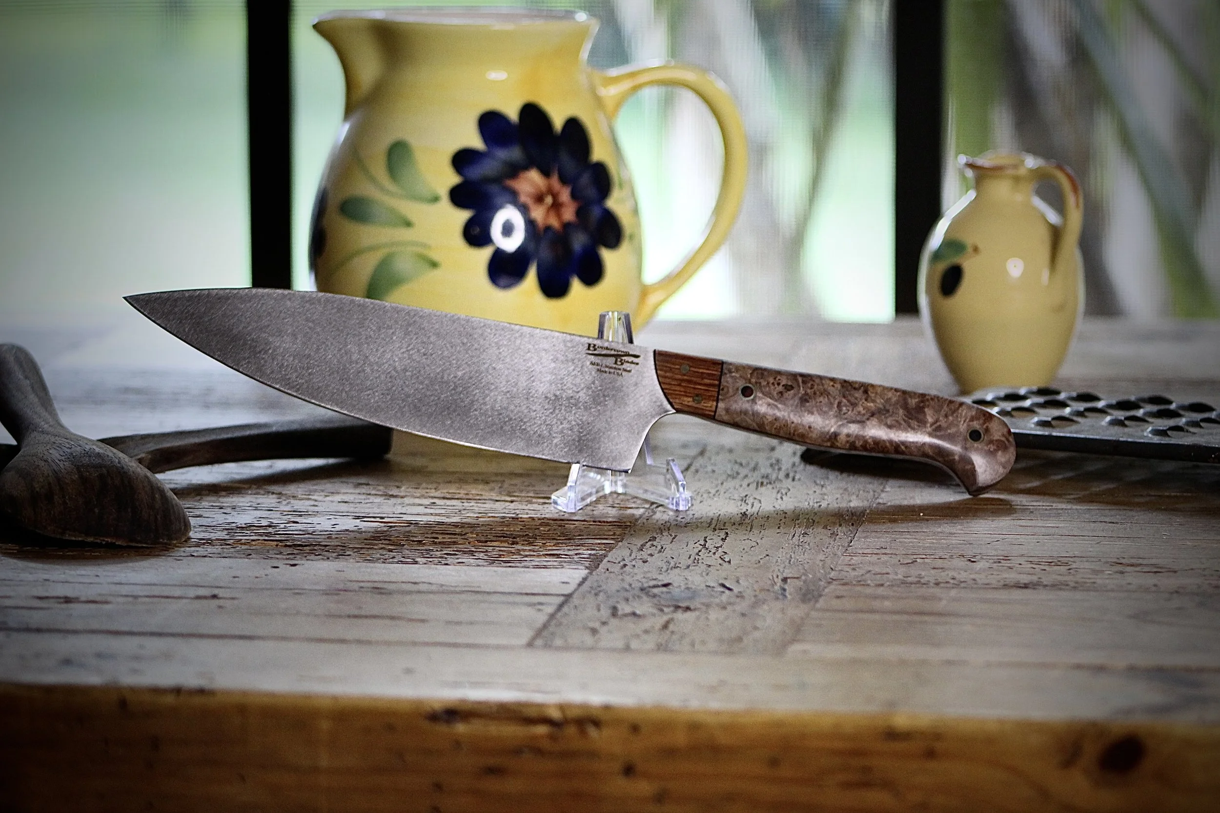 BORDERTOWN BLADES® is just one guy in a garage and this gives him the ability to offer optional customizations. If you don’t see exactly what you are looking for, ask us and we will work with you to create your perfect piece or set of cutlery. Please note: no two wood handles will be exactly the same. I am very particular about the pieces I select for handles; choosing those with unique patterns, tight grains, or high chatoyancy.
